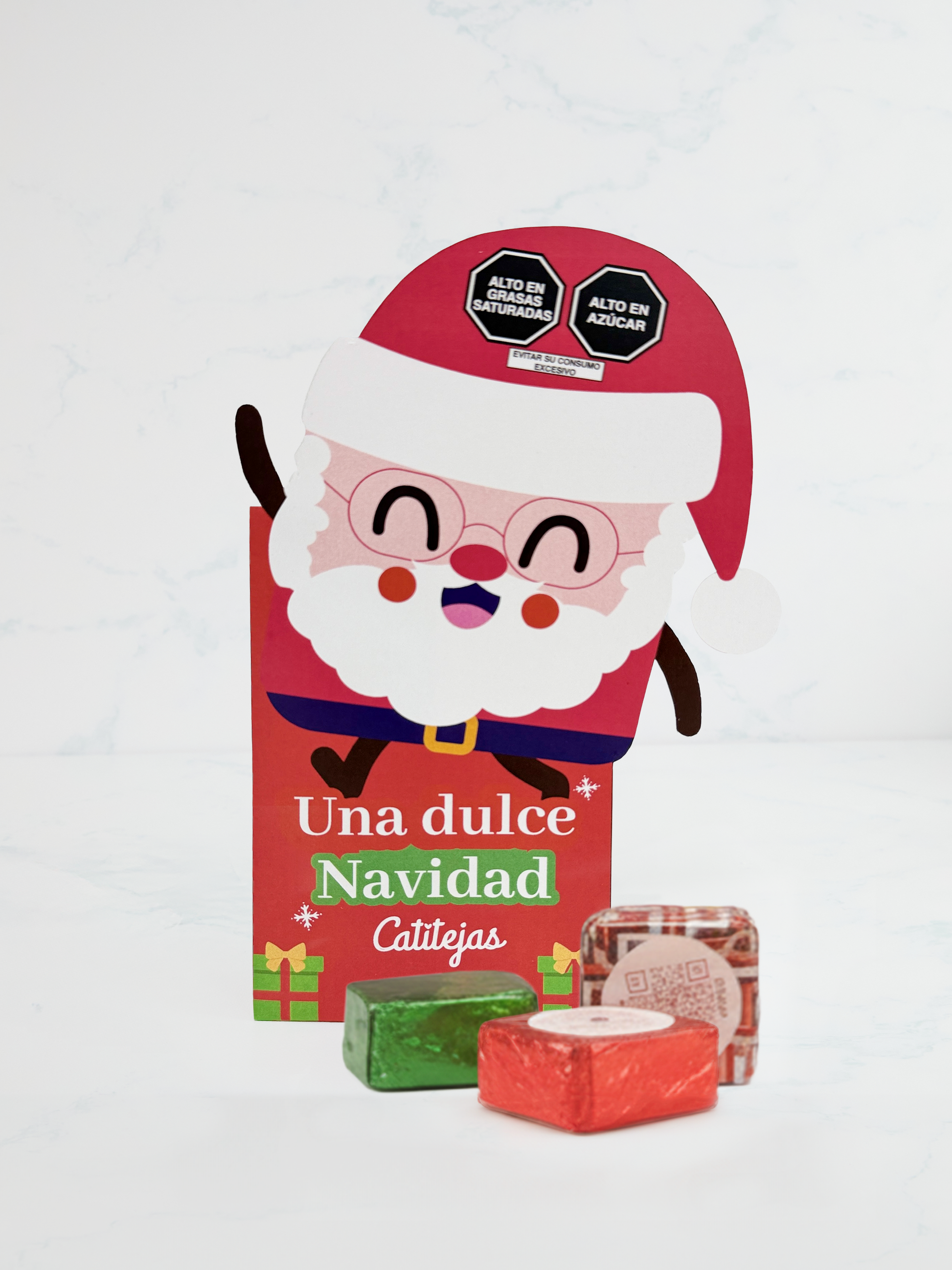 Catibox Navideño con diseño de Santa Claus. Incluye 3 Catitejas de sabores variados.