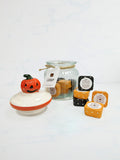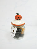 Catienvase de vidrio, con tapa de cerámica color blanco y detalle de Calabaza para 12 Catitejas.