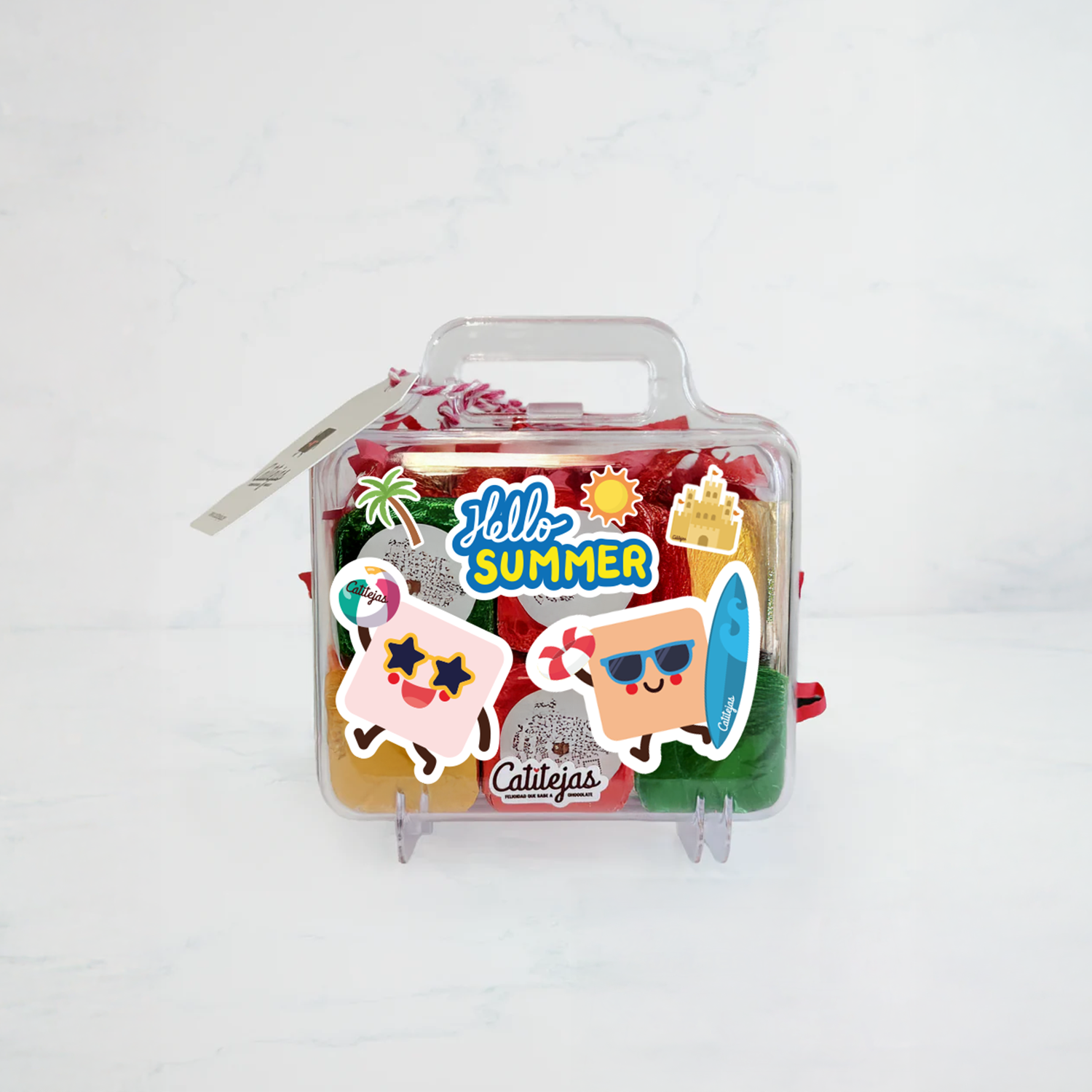 Abre esta adorable maletita acrílica y descubre 12 deliciosas Catitejas con sabores que te sorprenderán. ¡Bonus! Incluye una plancha de stickers divertidos para personalizar tu colección. Perfecto para regalar veraniego lleno de color y sabor.